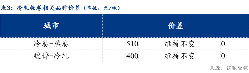 品种价差看,冷热价差510元/吨,镀冷价差400元/吨。